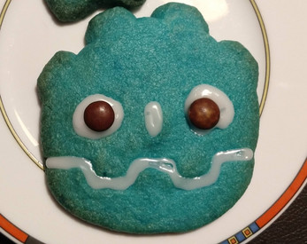 Mix about 50-100 grams of powdered sugar with a tiny amount of water. Put paste into a freezer bag and cut a small hole. Use paste to draw details on face.